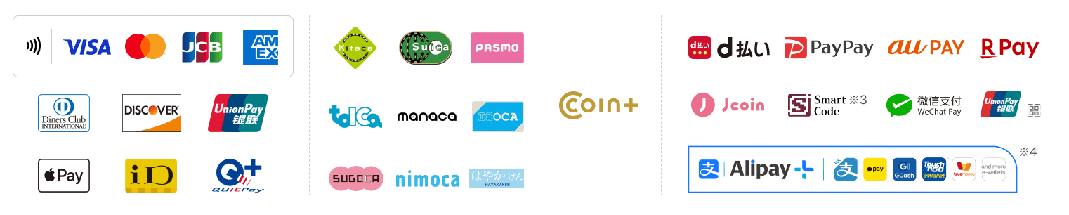 *クレジットカード決済, 交通系電子マネー, QR決済利用できます